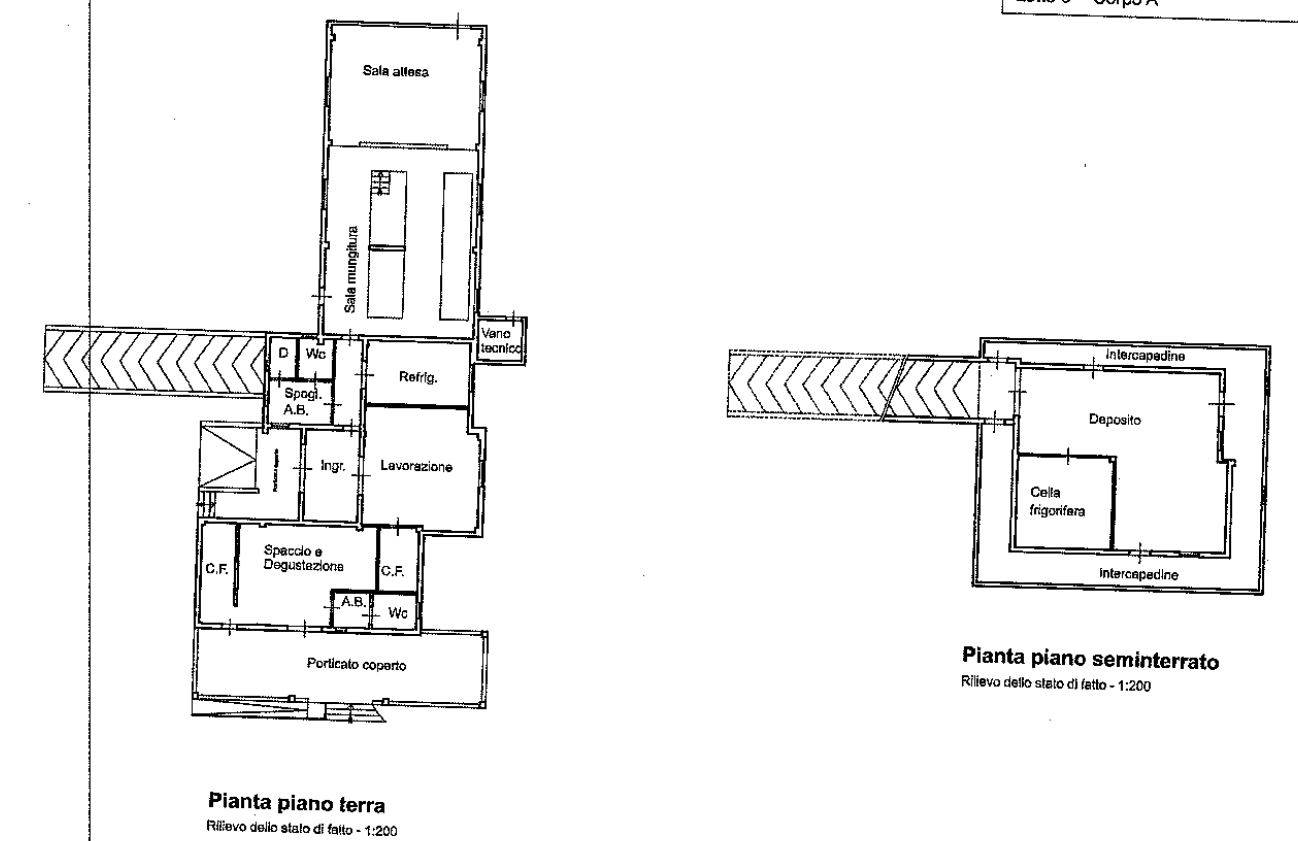 Piena proprietà di locali per la produzione e vendita prodotti caseari, olive, fienile, magazzini e area scoperta d'esercizio siti nel Comune di Lecce (LE), Strada Provinciale 298 Contrada Fossa. Il primo immobile (corpo A) è composto da locali per la produzione e vendita di prodotti caseari si sviluppa al piano terra e scantinato, ha un'altezza di 3 mt e sviluppa una superficie di circa 446 mq. Il secondo immobile (corpo B) è composto da un capannone prefabbricato al piano terra destinato ad ovile, ha un'altezza interna di 4,50 mt e sviluppa una superficie di circa 914 mq. Il terzo immobile (corpo C) è composto dal fienile con annesse tettoie per il ricovero di macchine e attrezzature agricole, è posto al piano terra e sviluppa una superficie di circa 451 mq. Il quarto immobile (corpo D) è comporto da porzione del vecchio fabbricato rurale in parte ristrutturato e destina ad abitazione ed in parte utilizzato come magazzino per l'attività aziendale, è posto al piano terra e si sviluppa su due piano fuori terra ed ha una superficie di circa 551 mq. Il corpo E è composto da area scoperta d'esercizio di pertinenza dei fabbricati in parte utilizzata come orto, in parte a viabilità interna e in parte terreno vegetale incolto e sviluppa una superficie di circa 6.450 mq.