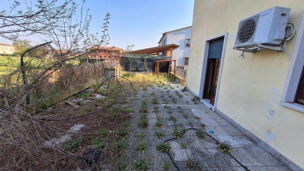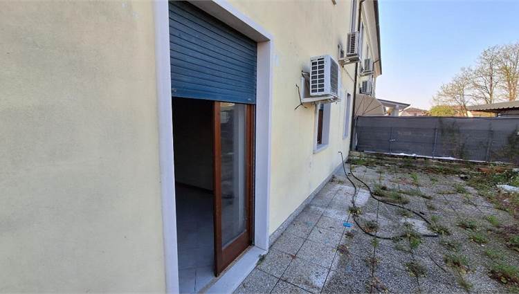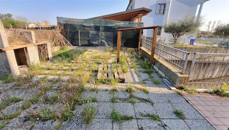 Piena proprietà di appartamento con garage e corte esclusiva sito nel Comune di Zimella (VR), Via Giacomo Leopardi n. 87. L'immobile è composto al piano terra da portico, soggiorno-cucina, due camere da letto e bagno, al piano interrato è presente un locale adibito a ripostiglio raggiungibile per mezzo di una scala a chiocciola situata all'interno dell'abitazione e un ulteriore locale ripostiglio al quale vi si accede esclusivamente dalla corsia di manovra. L'unità abitativa sviluppa una superficie di circa 85 mq oltre al portico di circa 6 mq, ai due ripostigli di circa 32 mq totali, all'autorimessa di circa 25 mq e alla corte esclusiva di circa 270 mq.