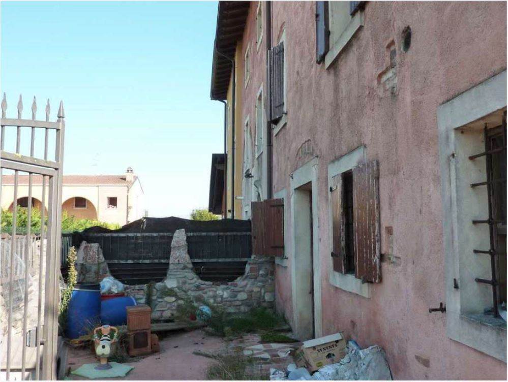 Piena proprietà di porzione di fabbricato tipo casa a schiera disposto sui piani terra, primo e secondo con corte esclusiva sito nel Comune di Nogarole Rocca (VR), Località Pradelle, Via Varana n. 12. L'immobile è composto al piano terra da porticato, ingresso-pranzo-soggiorno, piccolo vano cucina, disimpegno, ripostiglio sottoscala e scala, al piano primo da disimpegno, bagno, camera da letto e ripostiglio, al piano secondo da disimpegno, bagno, camera da letto e ripostiglio. L'unità abitativa sviluppa una superficie di circa 145 mq oltre al porticato di circa 12 mq e alla corte esclusiva di circa 271 mq.