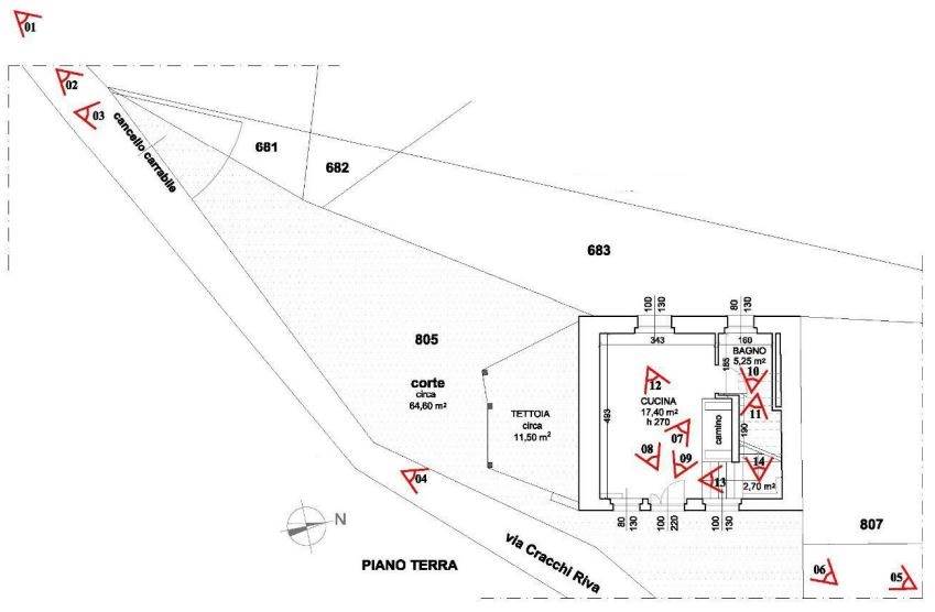 Piena proprietà di fabbricato ad uso civile abitazione disposto su due piani fuori terra con annessa corte esclusiva sito nel Comune di Vestenanova (VR), Contrà Riva, Via Cracchi Riva snc. L'immobile sviluppa una superficie di circa 74 mq ed è composto al piano terra da cucina, bagno, scala, al piano primo da disimpegno, camera con ripostiglio e ripostiglio (utilizzato come camera).