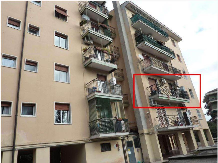Piena proprietà di appartamento al piano secondo con cantina e posto auto coperto al piano interrato sito nel Comune di Verona (VR), Via Antonio Sangallo n. 3. L'immobile è composto da ingresso, piccolo ripostiglio, soggiorno, balcone, cucina, disimpegno, bagno e camera da letto. L'unità abitativa sviluppa una superficie di circa 91 mq oltre al balcone di circa 8 mq, alla cantina di circa 4 mq e al posto auto coperto di circa 14 mq.